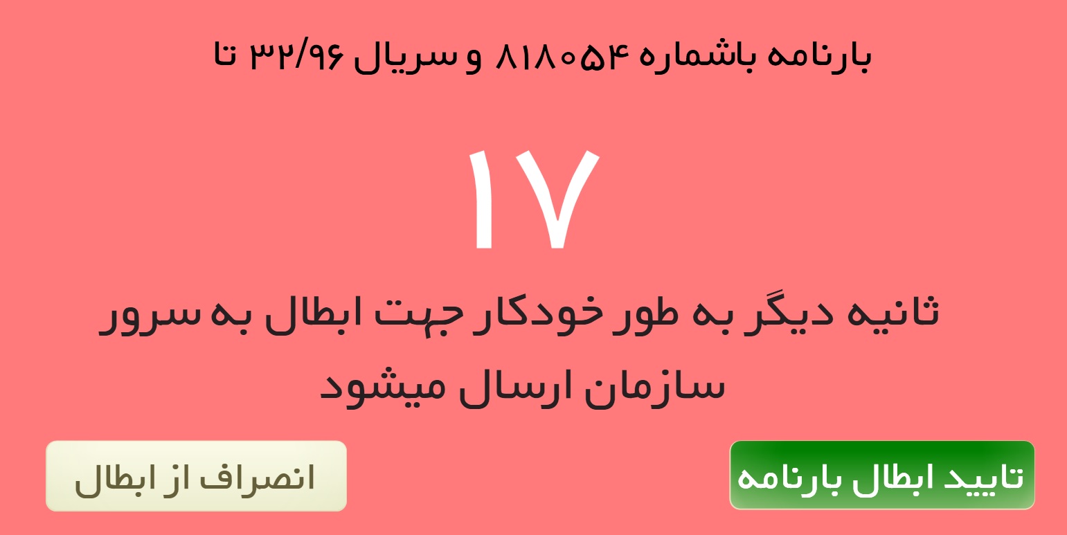 به اطلاع ميرساند زمان مجاز ابطال بارنامه پس از صدور (دريافت كد آنلاين ) مدت 12 ساعت است