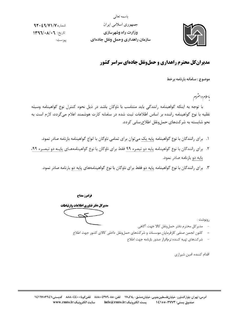 گواهينامه راننده بايد منطبق بر ناوگان باشد